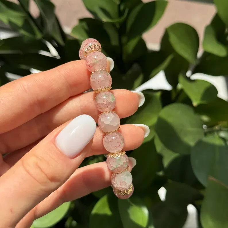 Andkiss Colorful Cracked Glass Beads Ombre Stretch Bracelet | Vibrant Handmade Jewelry|perfect gift for her