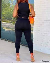 Colorblock Contrast Mesh Crop Top & High Waist Pants Set