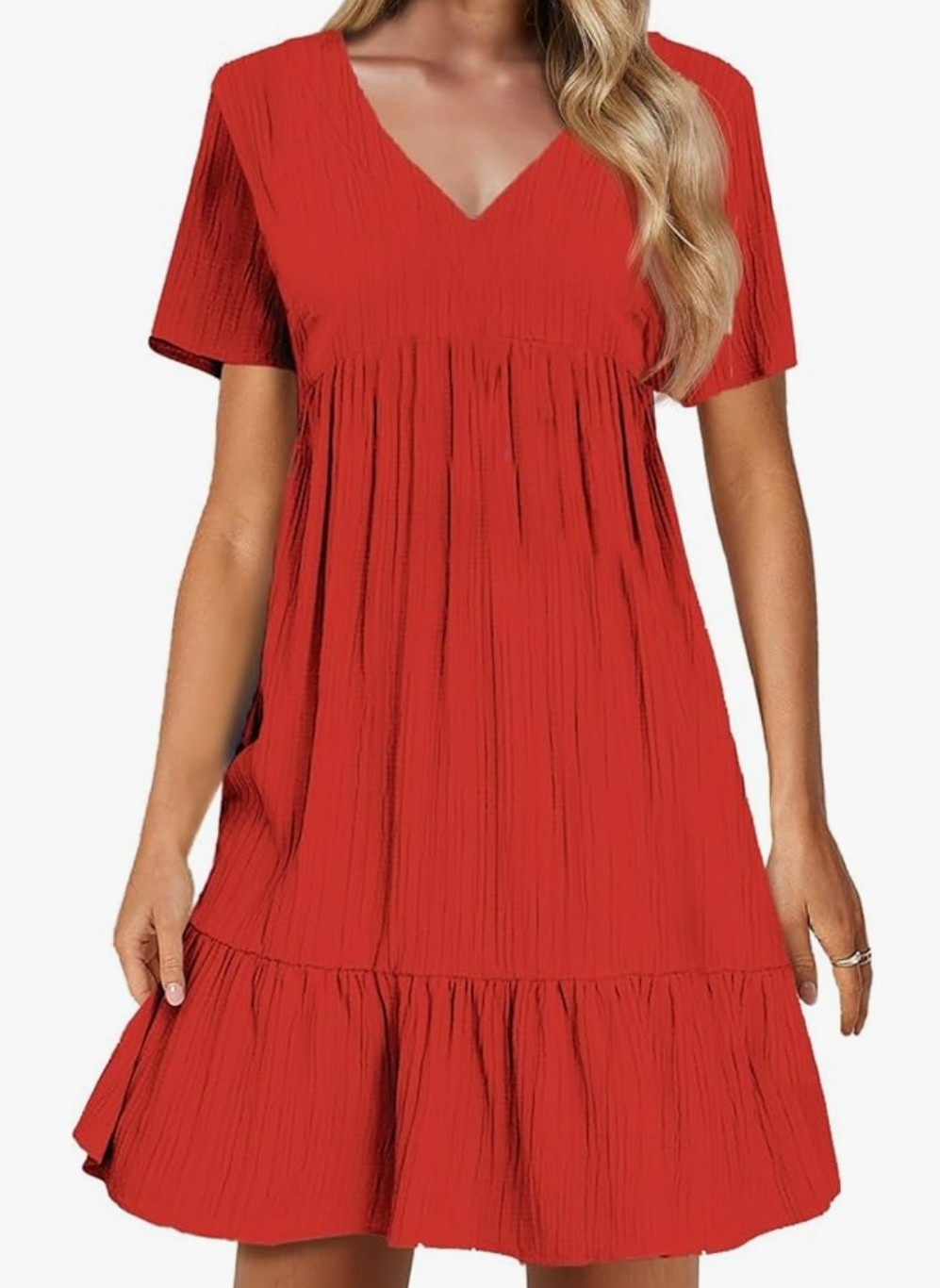 orset Dress for Women, Ladies Casual Sexy Solid Color V Neck Loose Patchwork Short Sleeve Block dress
