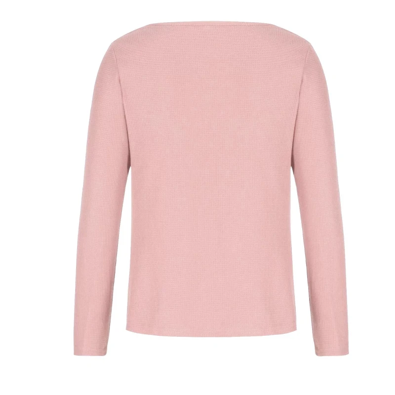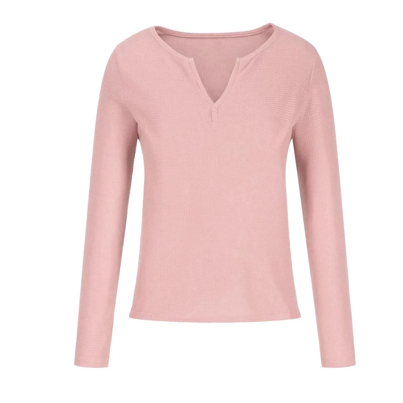 Womans Long Sleeve T-shirt V Neck Loose Fit Soft Waffle Knit Themal Top